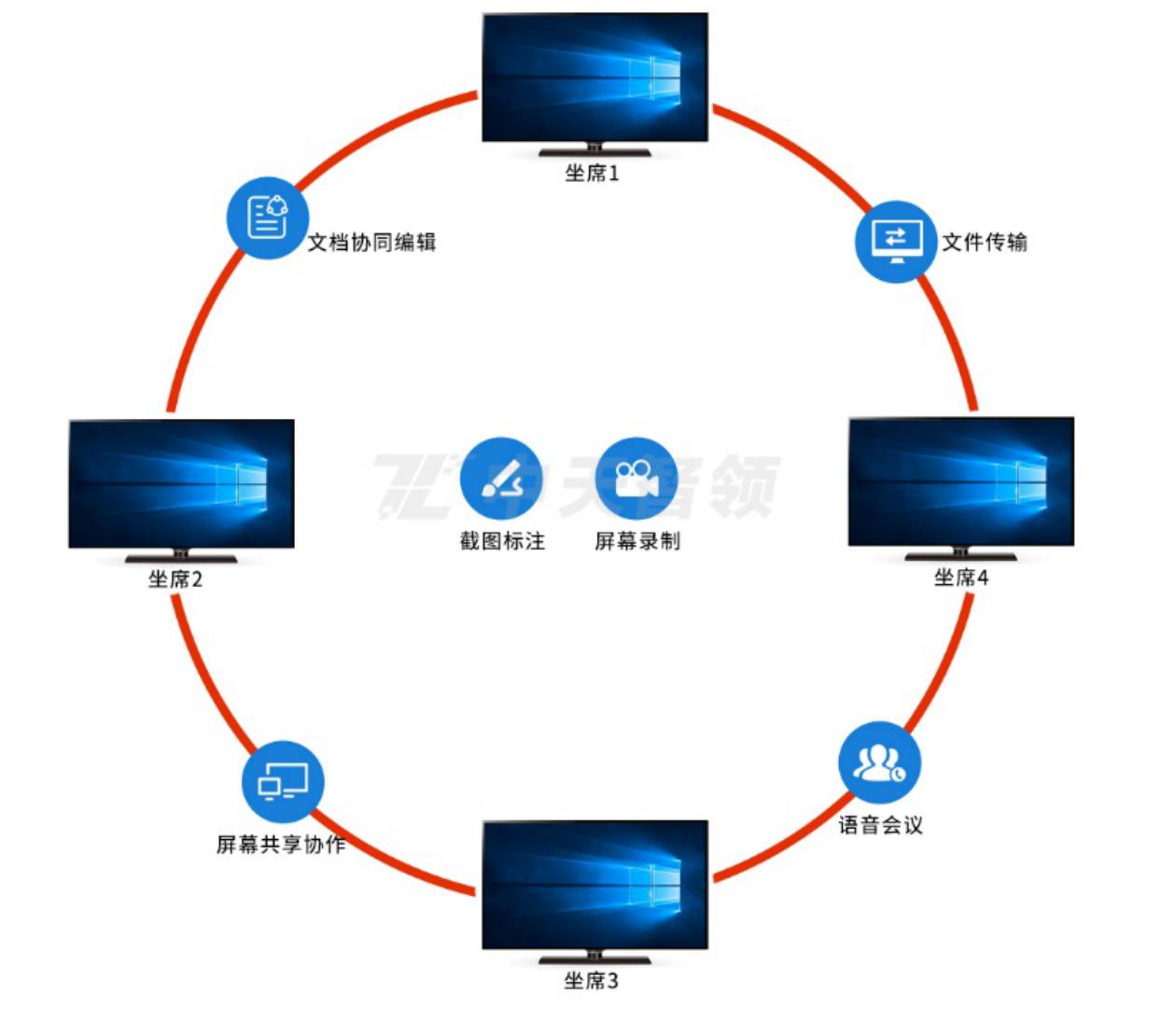 系統(tǒng)包含多種用于席位間交流的便捷工具,截屏標(biāo)注工具可以實(shí)現(xiàn)通過(guò)快捷鍵截取當(dāng)前屏幕上指定區(qū)域的圖像,并對(duì)截取的圖像進(jìn)行矩形、圓形、箭頭、自由劃線或添加文字等標(biāo)注,然后保存到本地或并自動(dòng)復(fù)制到剪貼板。錄屏工具可以將屏幕的內(nèi)容錄制成視頻格式文件,錄制視頻的質(zhì)量可以設(shè)置,并且可以自定義開啟/停止錄制的快捷鍵。