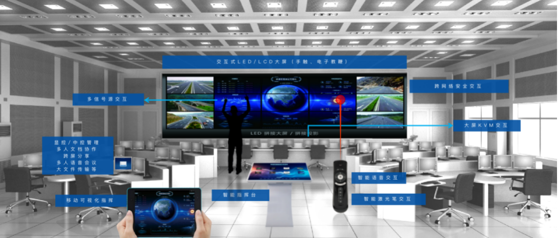 中天智領(lǐng)智慧交互系統(tǒng)支持多種系統(tǒng)信號交互,滿足運(yùn)營多端的需求。一體化的融合平臺設(shè)計(jì),實(shí)現(xiàn)設(shè)備融合、網(wǎng)絡(luò)融合、業(yè)務(wù)融合、系統(tǒng)融合、顯示融合。對接入系統(tǒng)的信號源可通過指揮臺和遙控器進(jìn)行控制,可快速的調(diào)取場景,并對場景中任意信號源進(jìn)行操作,一臺設(shè)備就可以掌控全局。