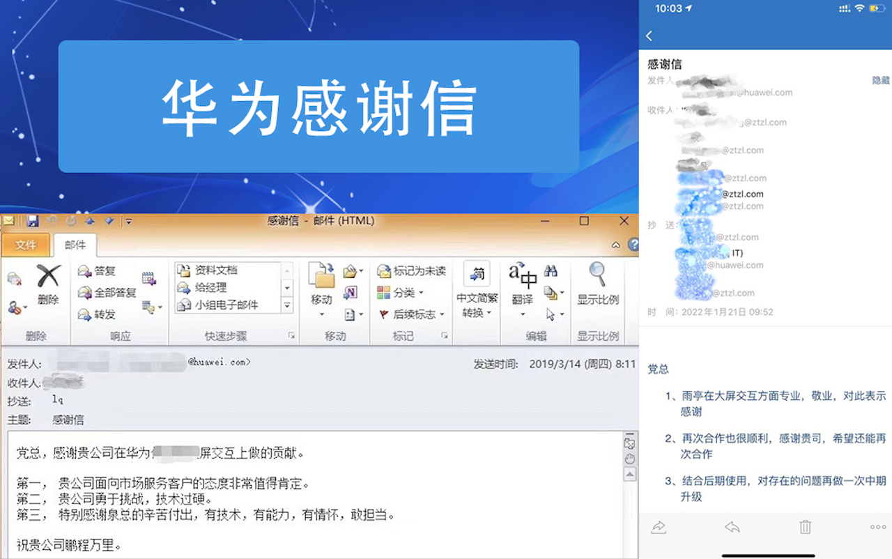 隨著第一次合作的深刻影響與延續,中天智領與華為再攜手開展了第二次合作,通過智慧交互業務管理系統解決了華為多業務交互難點。升級了技術實力與行業場景的應用經驗。第二次的合作中天智領同樣獲得了來自華為的高度贊揚,也表達了再次合作的意愿。中天智領將繼續秉承專注、專業、共贏的理念,做大、做強、做好智慧交互核心產品與業務,為各行各業的智慧轉型與智能化發展提供指引與升級賦能。