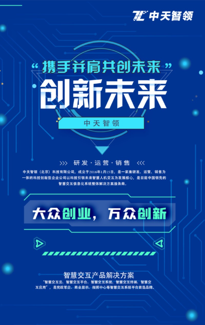 2022年雙創周為第八屆,從2015年以來,已經成功舉辦了七屆,各省各地通過搭建“雙創周”的展示平臺,促進各類創新創業要素的溝通對接,為全社會打造良好的創業創新氛圍。在雙創周的推動下,北京市不斷優化創新創業生態,提升創新創業活力,在新一代信息技術與智慧城市帶動下,數字經濟加速構建與發展,中天智領持續深入技術創新驅動發展戰略,在推進大眾創業萬眾創新上也取得了新進展。通過云展廳向大家展示關于“智慧交互”相關典型案例和最新的成果。