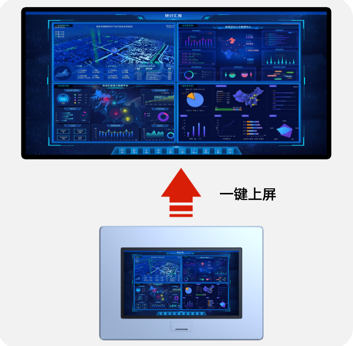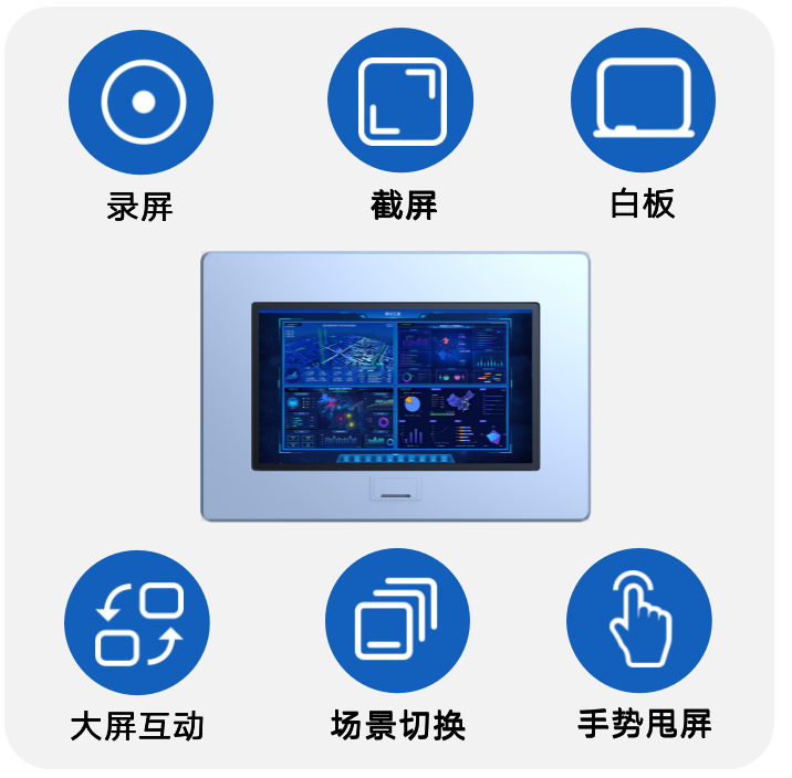 對內容進行錄屏、截屏保存、可圈可點、白板功能、超清投屏、一鍵清屏、場景切換、手勢甩屏、大屏互動等強大功能。