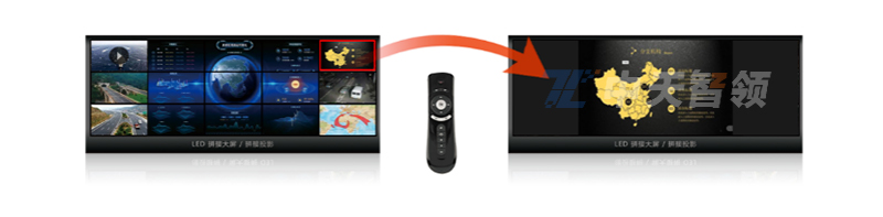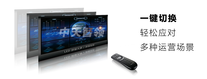 使用智能激光遙控上的場景切換按鈕可以快速應對多個大屏運營場景的切換工作,無需后臺人員參與,充分滿足使用者的快速響應需求。如果單個屏幕多于6個以上運營場景,還可以考慮配合中天智領智能語音交互系統完成快速切換。