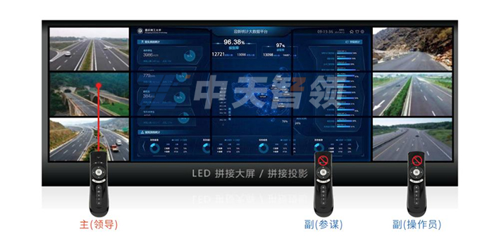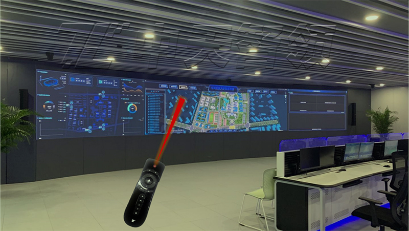 屏幕越大,內容呈現越多,遠距離觀看才能達到最佳的觀看效果,同時對屏幕進行操控與交互也同樣需要遠距離。中天智領智慧交互激光遙控系統依托于中天智領先進的計算機視覺技術而研發的遠距離交互系統,滿足大型信息中心在多屏幕、多運營場景、多信號終端、多業務系統情況下,使用智能激光遙控完成對多個屏幕、多個信號的指揮控制、場景切換、信號控制、業務交互、監控調控、地圖標會等豐富功能操作。