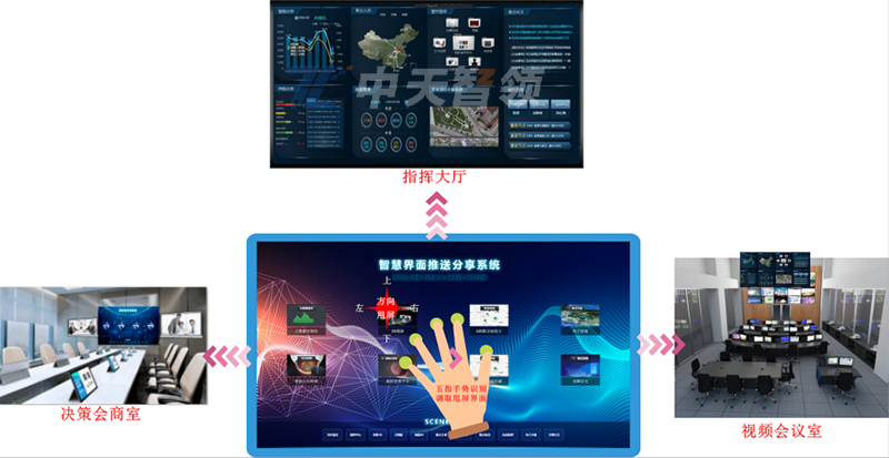 中天智領構建AI手勢識別人機交互平臺,使顯示大屏幕具有面向作戰(zhàn)指揮的智能交互功能,顯示系統(tǒng)及圖像處理系統(tǒng)的快調、場景切換、多媒體集控、融合指令調度,多系統(tǒng)聯(lián)動。