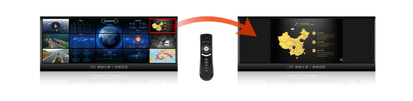 實(shí)現(xiàn)大屏上任意窗口的快速調(diào)整,可以將遠(yuǎn)處信號(hào)窗口快速調(diào)到面前大屏,或者進(jìn)行主、輔窗口的位置調(diào)換,滿足運(yùn)營(yíng)中窗口臨時(shí)布局調(diào)整需求。窗口位置調(diào)整后,仍然可以進(jìn)行內(nèi)容的完全控制。