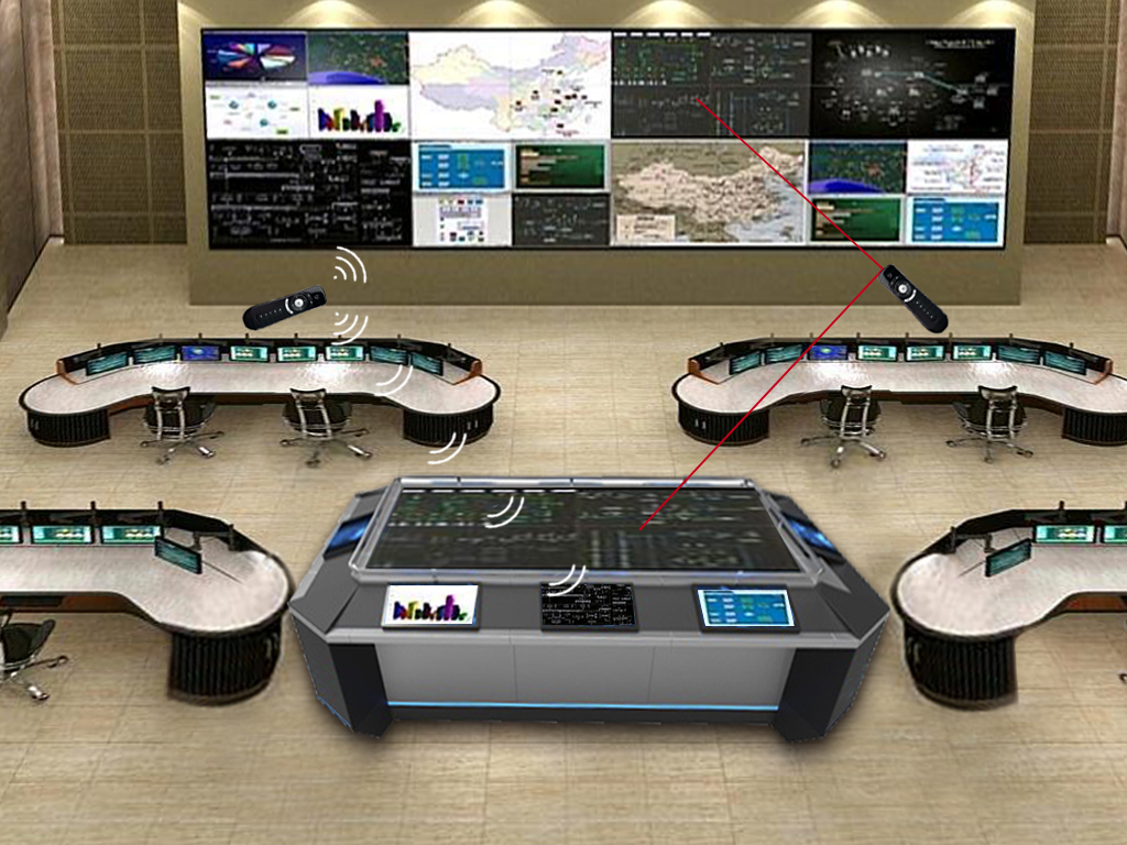 指揮臺(tái)是智能互動(dòng)系統(tǒng)的樞紐,接入并統(tǒng)一控制所有的智能互動(dòng)系統(tǒng)信號(hào),通過切換按鈕可以實(shí)現(xiàn)對(duì)大屏幕上任意顯示信號(hào)的同屏操作,也可以將自身顯示的信號(hào)畫面共享到大屏幕上顯示,多屏同步操作;落地式智能指揮臺(tái)操作人員能夠根據(jù)首長要求快速調(diào)取信息、將所需信息展示在大屏幕上,方便首長掌握全局形勢、詳細(xì)了解特定信息細(xì)節(jié)。桌面式智能指揮臺(tái)供首長使用,可以直接對(duì)主顯屏幕區(qū)域及電子沙盤內(nèi)容進(jìn)行同屏操作,也可以將指揮臺(tái)內(nèi)容甩屏推動(dòng)到周圍的液晶電視上顯示,方便快速傳達(dá)首長指令。