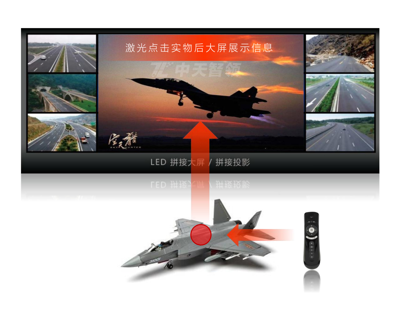 實物信息化交互系統(tǒng)支持將普通的照片墻、展示位、模型道具、沙盤等實體物件升級為可交互的信息終端,使用激光筆點擊道具模型,可以在屏幕上展示該模型的相關(guān)聯(lián)信息、影像或者應用程序,讓普普通通的實物賦以信息化,交互化。