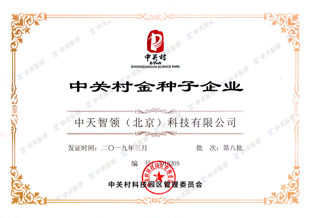 [資質(zhì)展示]中關(guān)村金種子企業(yè)