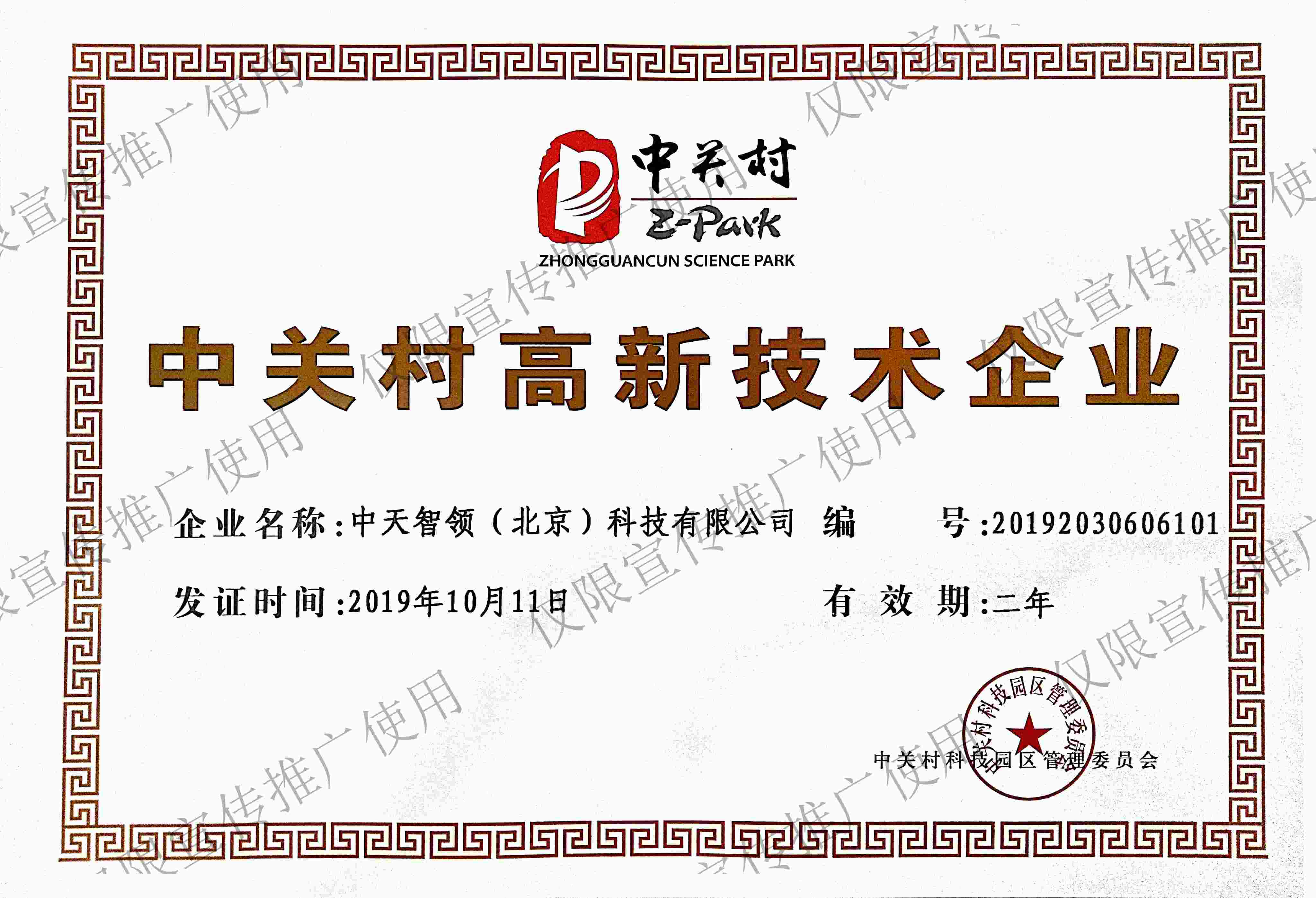 [資質(zhì)展示]中關(guān)村高新技術(shù)企業(yè)證書
