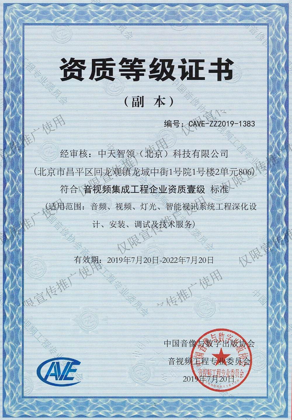 [資質(zhì)展示]音視頻集成工程企業(yè)資質(zhì)壹級資質(zhì)等級等級證書