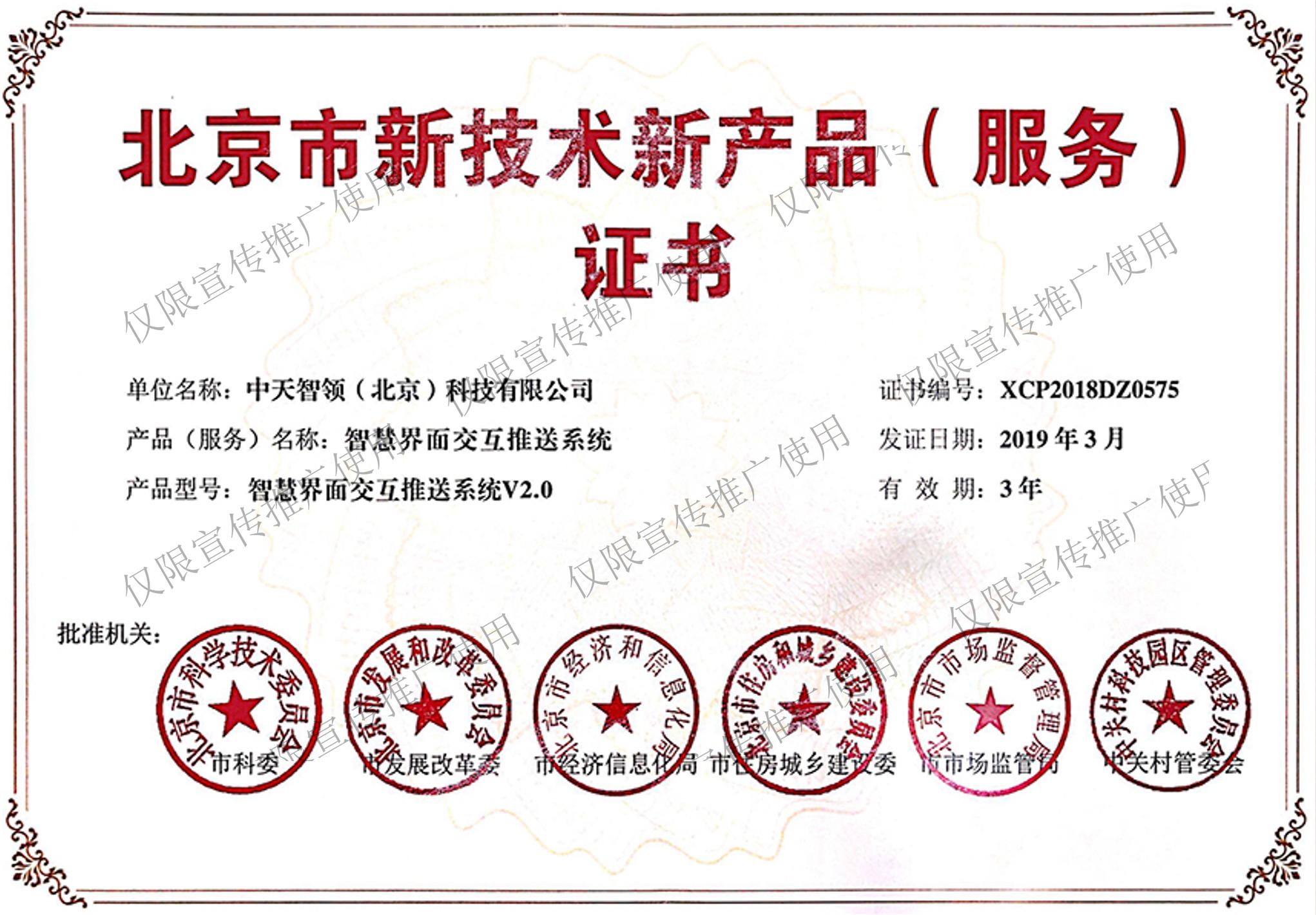 [資質(zhì)展示]新技術(shù)新產(chǎn)品-智慧界面交互推送系統(tǒng)