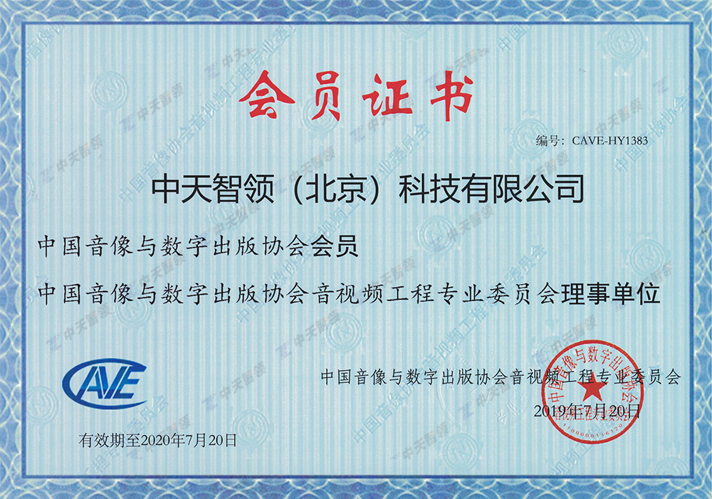 [資質(zhì)展示]中天智領(lǐng)資質(zhì) 中國音像與數(shù)字出版協(xié)會會員證書