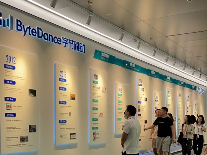 2022年8月24日,在中國智慧城市百人會副秘書長王杲的帶領下,中天智領市場負責人走訪了位于方恒時尚中心B座的名企字節跳動,在字節跳動的參觀中也更進一步的體會到了“智慧交互”在其各個場景的完美展示與應用。